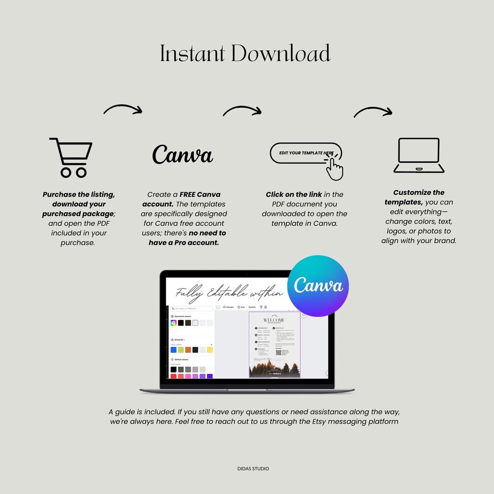 - To access the Canva templates, click on the links in the PDF file in your order.