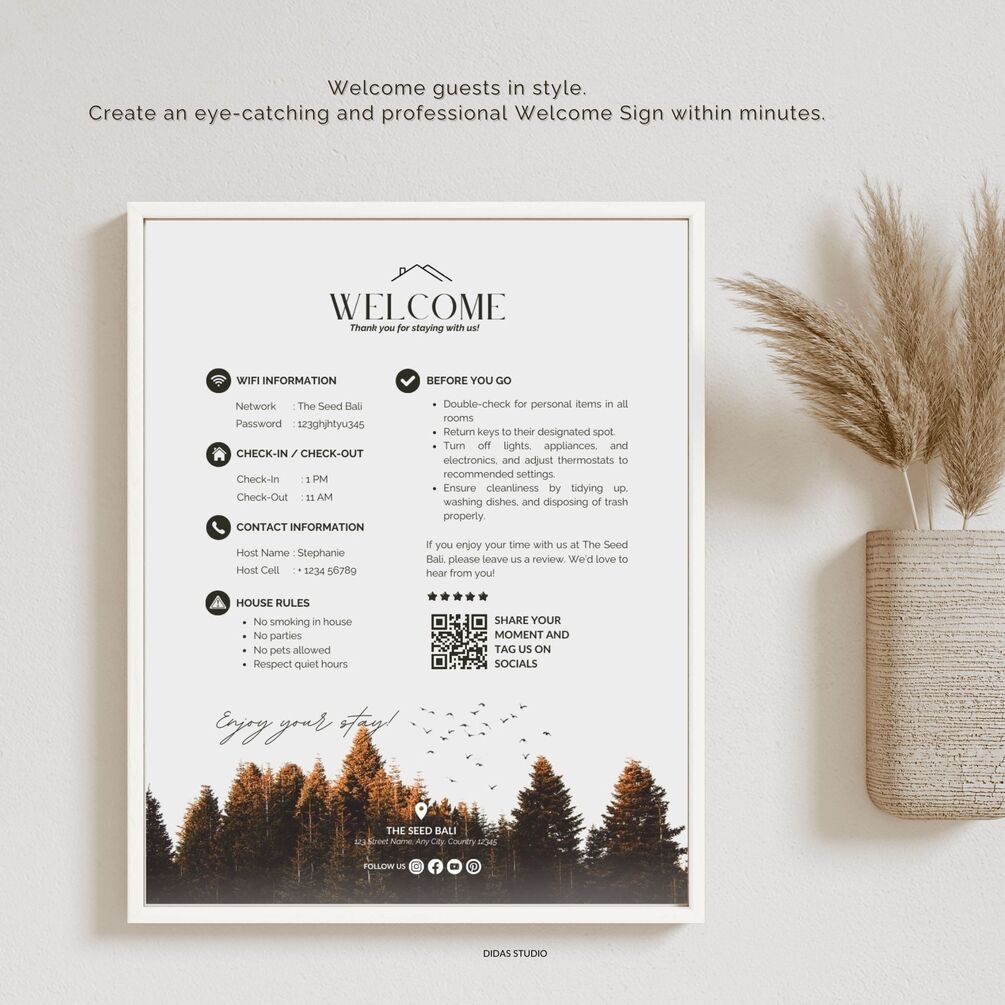 Welcome your guests in style with our charming Vacation Rental Welcome Sign template!